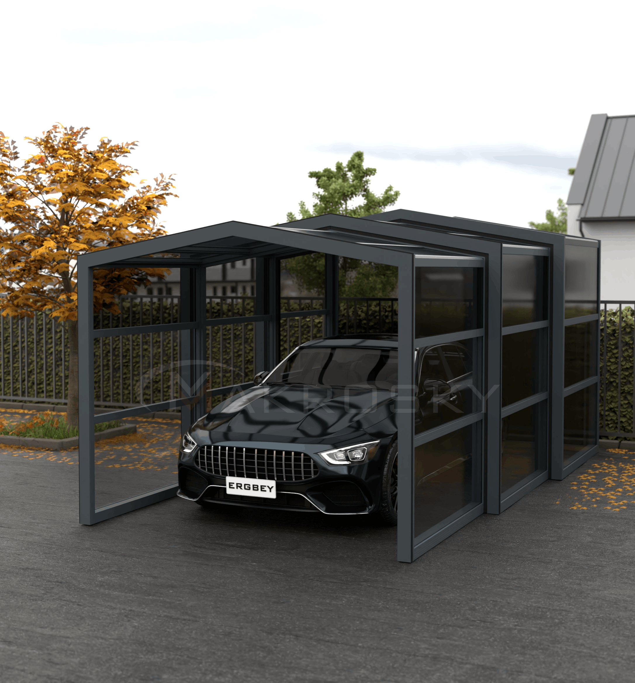 Bu ürünümüz modüler kapalı otopark çözümüdür. Site veya ev gibi açık alana sahip yerlerde araç için kapalı, taşınabilir ve ekonomik bir koruma alanı sağlar.